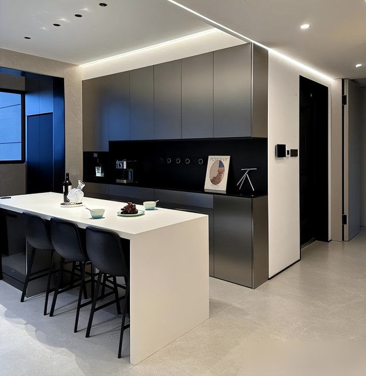 厨房拆半墙我直呼内行炒青椒的味道刚冒头餐厅就收到信号菜上桌还冒热气以前关起门来做饭跟蒸桑拿似的我妈总怀疑我在厨房练铁砂掌现在倒好边炒边唠嗑火候到位心情也到位