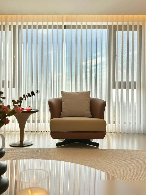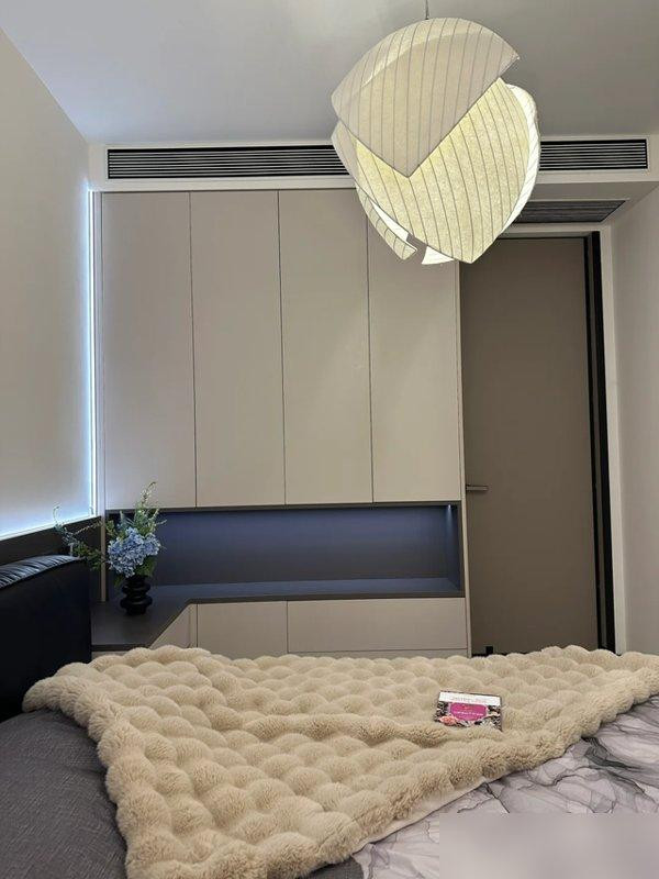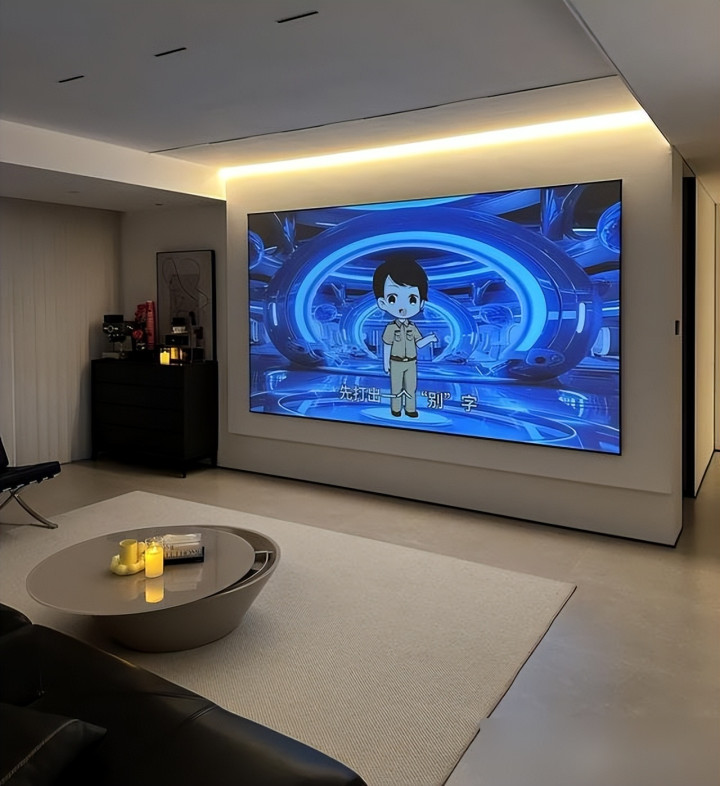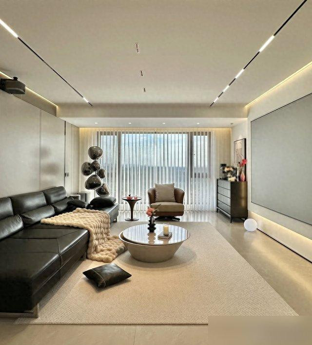 客厅更绝四米多的横厅啥背景都没做落地窗当主角阳光像不要钱往里倒投影一拉一百三十三英寸比我去IMAX还爽想起我家那占满墙的电视柜积灰神器擦一次老腰离家出走到现在都找不到